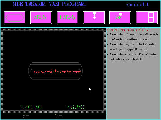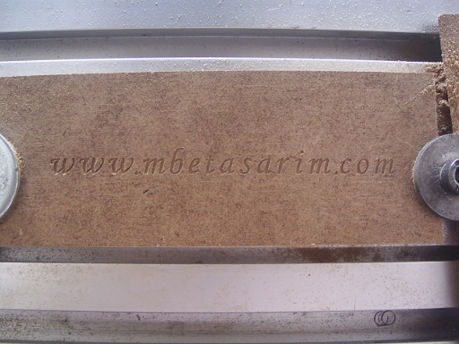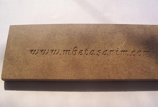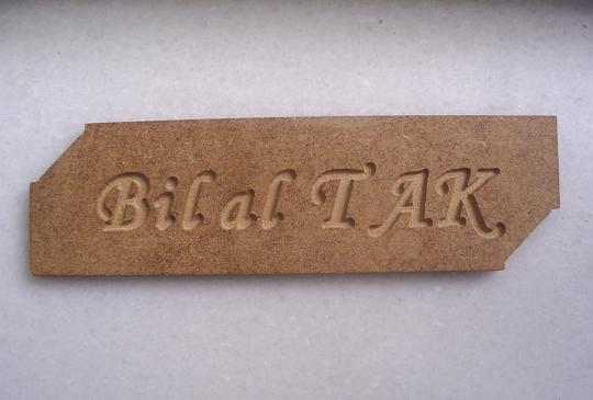 Tezgahın özel yazılımı içerisinde kapı isimliği,etiket ve diger ürünlerinizin üzerine yazılarınızı kolayca yazabilirsiniz.Bu iş için bir CAM programı kullanıcısı olmanız gerekmez , bilgisayar kullanabilecek kabiliyete sahip olmak yeterli olacaktır.